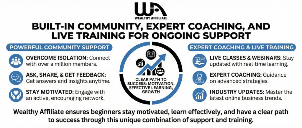 In addition to peer support, Wealthy Affiliate provides live classes, webinars, and expert coaching. These sessions cover advanced strategies, updates in the affiliate marketing industry, and real-world advice for scaling your business. The combination of community, coaching, and live training ensures you’re never left guessing what to do next and gives you a clear path toward achieving your goals.